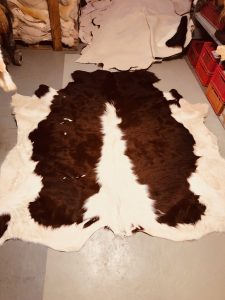 Dieses rot-braune Simmentaler Bullen-Fell wurde in unserer deutschen Gerberei absolut chromfrei gegerbt. Normalerweise werden solche Felle fast ausschließlich chromgegerbt angeboten – hier erhalten Sie eine umweltfreundliche und gesundheitlich unbedenkliche Alternative.