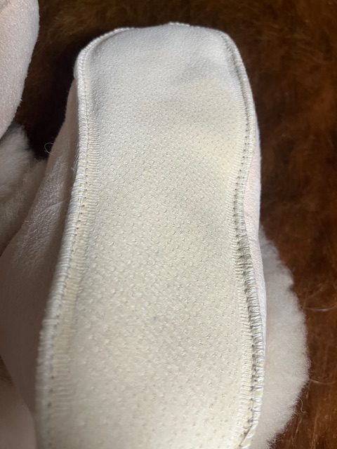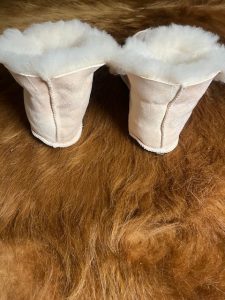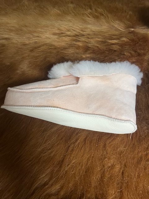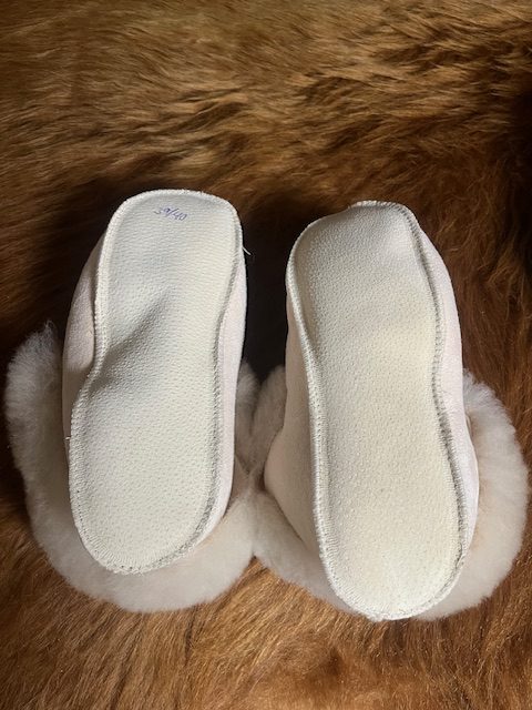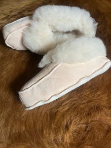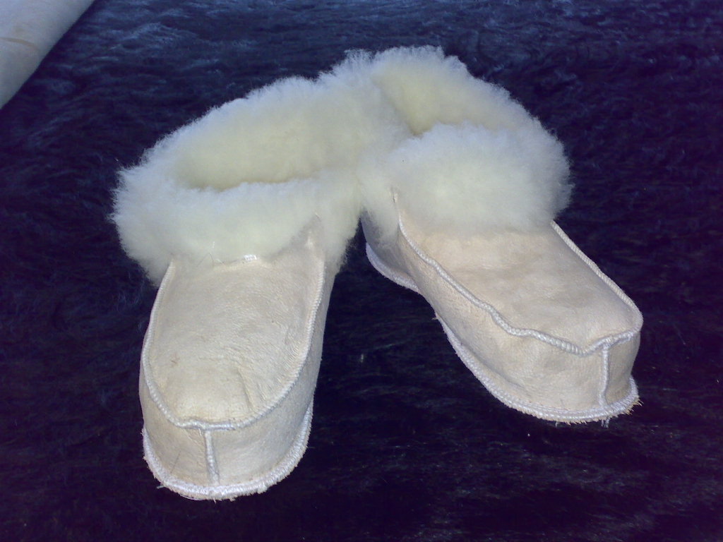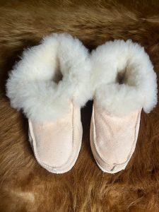 Fellhausschuhe aus pflanzlich gegerbten Schaffellen